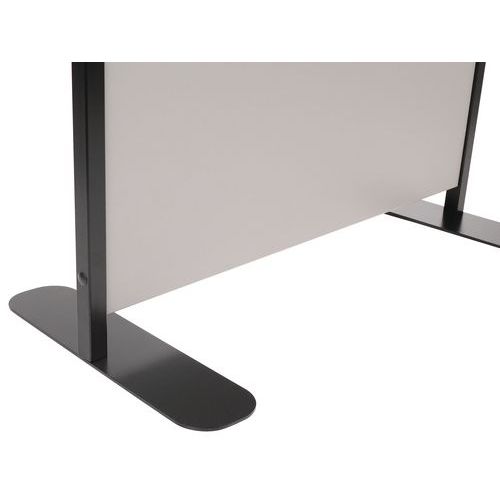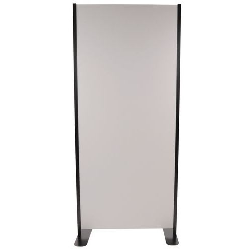 Panneau de particules surfacé mélaminé épaisseur 16 mm. Montant métal section 2,5 x 2 cm, revêtu époxy coloris noir. Fabriqué en France.