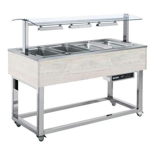 | Intitulé du produit | Desserte bain-marie à eau ESSENCE REDES-RED+4H, Hauteur hors tout: 128.8 cm, Poids: 90 kg |