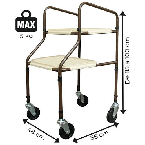 | Intitulé du produit | Desserte de table roulante chocolat/crème Identités, Coloris: Marron/beige, Poids: 5 kg, Largeur: 48 cm |