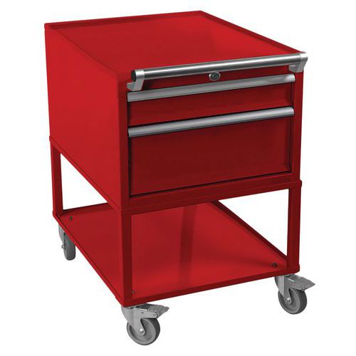 - 2 blocs tiroir : 1 de 100 et 1 de 200 mm de haut, fermeture centralisée par serrure à 2 clés.Ouverture d'un seul tiroir à la fois.
