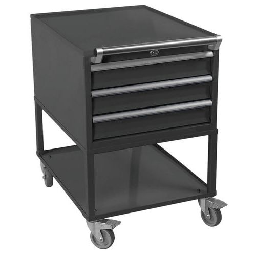 - 3 blocs tiroir : 1 de 50 et 2 de 200 mm de haut, fermeture centralisée par serrure à 2 clés.Ouverture d'un seul tiroir à la fois.