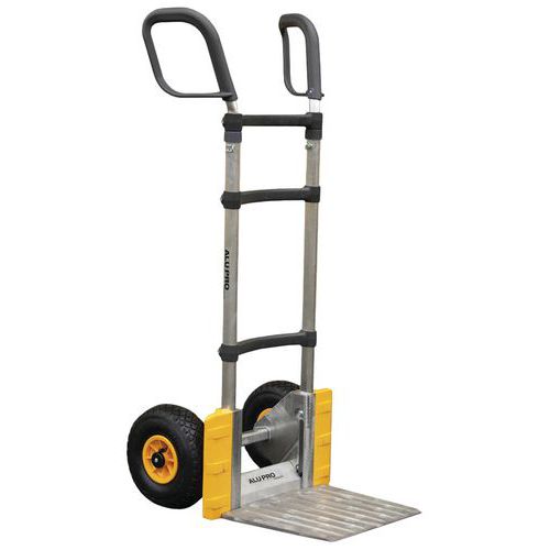 - Diable aluminium à bavette fixe avec poignées ergonomiques.
