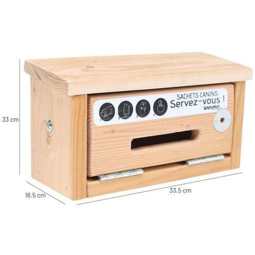 | Intitulé du produit | Distributeur de sachets canin rouleau, Nb de sacs: 200, Ouverture: À fente, Matériau: Bois, Coloris: Beige |