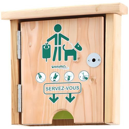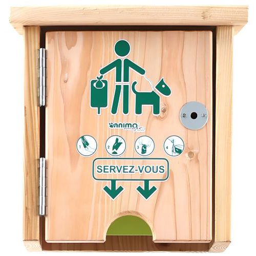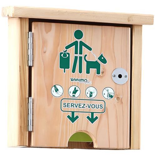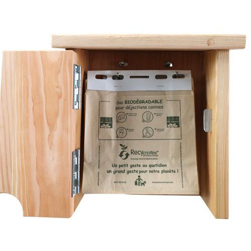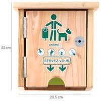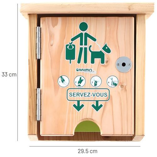 | Intitulé du produit | Distributeur liasse papier pour sachet canin bois, Nb de sacs: 150, Ouverture: Frontale, Matériau: Bois |