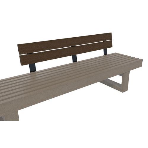Dossier pour banquette Forum sans entretien Imputrescible Résiste à l'eau et à l'humidité Anti UV et anti tags Lattes : section 4 x 12 cm. Supports en acier laqué noir. Autres coloris sur demande : noir, vert, sable.