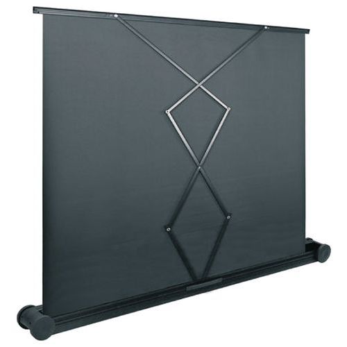 Ecran de projection jusqu'à 2,40m de base Roues aux extrémintés ouvreture rapide Déplacement aisé A chaque extrémité du carter de l’écran, une poignée et 2 larges roue permettent un déplacement aisé. Entièrement en aluminium, son carter design protège efficacement l’écran pendant le transport. Il suffit de lever la barre supérieure de l’écran pour l’ouvrir instantanément, grâce au mécanisme à pantographe. Format 4/3 drop noir en partie basse, cadrage noir 2cm, Format carré cadrage noir 2 cm, Format 16/9 drop noir en partie basse, cadrage noir 2 cm. Garantie client : 3 ans