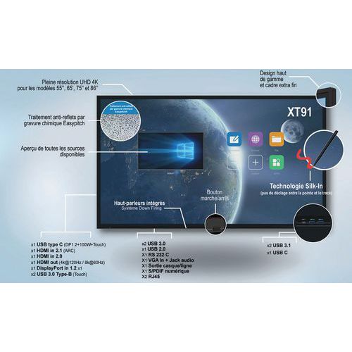 Ecran Numerique Interactif Advance XT91, Fixation VESA: 400 x 400 mm, Connexion Wi-Fi: oui