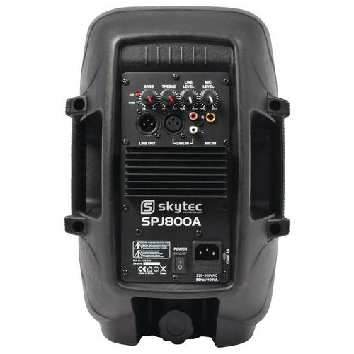 Enceinte active SPJ, Puissance maxi: 200 W, Roulettes: non, Microphone: non, Bluetooth: non, Lecteur CD: non