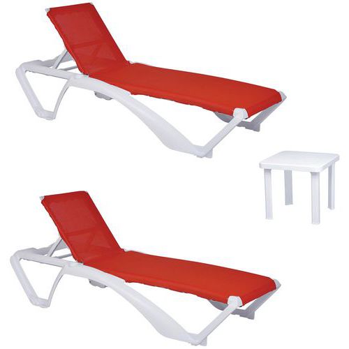 Ensemble détente ACQUA ANDORRA composé de 2 chaises longues, structure en polypropylène et fibre de verre.