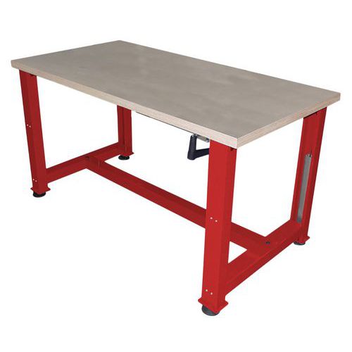 Etabli à ht. réglable manivelle plateau multiplis Anjou Tolerie, Charge maxi: 1000 kg