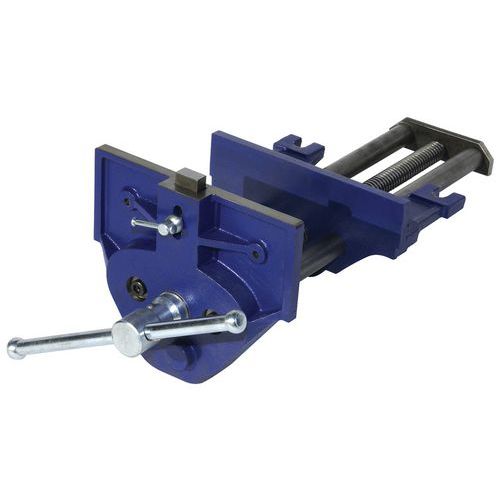 Presse avant verticale : avec mâchoire bois et vis acier Ø 24 mm. Permet de serrer de grandes pièces. Équipé d’une coulisse basse avec goupille pour un serrage parallèle des pièces.