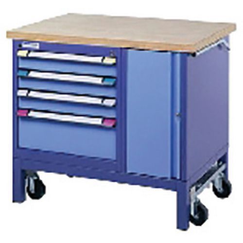 Etabli mobile 4 tiroirs, 1 porte avec roues escamotables