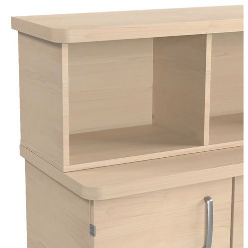 Etagère pour buffet Danaé Signature en panneaux mélaminé. Dessus coins arrondis aggloméré et stratifié ép.40 mm, chant ABS contretypé, plaqué à chaud. L'étagère permet d'avoir un espace de rangement supplémentaire qui s'intégrera parfaitement dans votre espace et qui vous fera gagner de la place