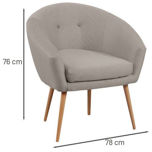 Fauteuil d'accueil Armand offrant un large choix de coloris Structure panneau de particules épaisseur 15 mm Revêtement tissu 100% polyester Coussin assise fixe, mousse polyuréthane épaisseur 8 cm, densité 28 kg/m3 L/H/P assise : 46 x 46 x 46 cm. Dossier hauteur 35 cm. L/H/P fauteuil : 76 x 81 x 66 cm. Pieds Ø 3 cm en bois massif verni naturel. Livré pieds à monter.