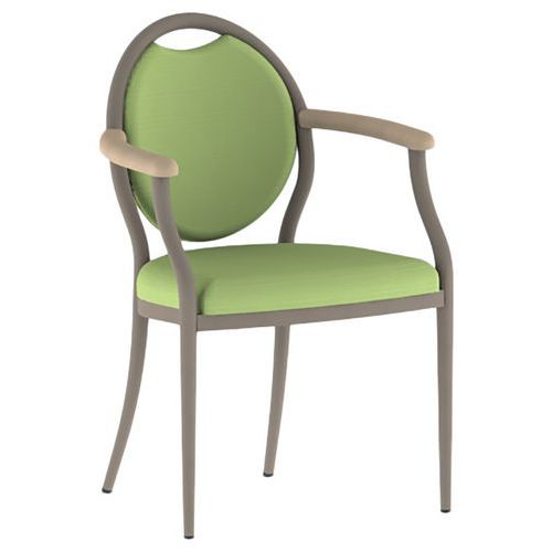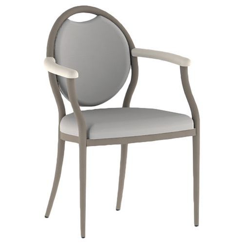 Bridge 260 avec structure en alu. Assise hêtre multiplis, mousse Bultex. Dossier avec prise de main hêtre multiplis. Assise et dossier tissu enduit Abaka : 88% PVC, 12% PES. Accoudoirs hêtre massif. Piètement époxy tube soudé. Embouts à ailettes en polyéthylène et semelle PTFE.