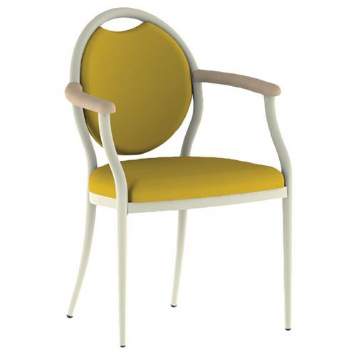 Bridge 260 avec structure en alu. Assise hêtre multiplis, mousse Bultex. Dossier avec prise de main hêtre multiplis. Assise et dossier tissu enduit Abaka : 88% PVC, 12% PES. Accoudoirs hêtre massif. Piètement époxy tube soudé. Embouts à ailettes en polyéthylène et semelle PTFE.