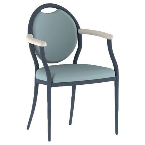Bridge 260 avec structure en alu. Assise hêtre multiplis , mousse Bultex. Dossier avec prise de main hêtre multiplis. Assise et dossier tissu enduit Gingko : 85% PVC, 15% coton. Accoudoirs hêtre massif. Piètement époxy tube soudé. Embouts à ailettes en polyéthylène et semelle PTFE.