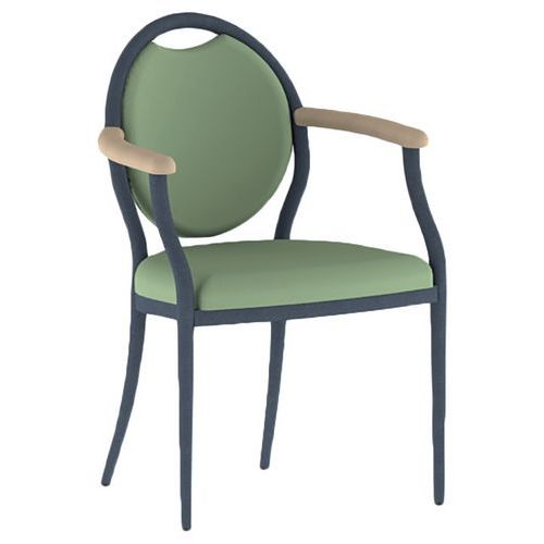 Bridge 260 avec structure en alu. Assise hêtre multiplis , mousse Bultex. Dossier avec prise de main hêtre multiplis. Assise et dossier tissu enduit Gingko : 85% PVC, 15% coton. Accoudoirs hêtre massif. Piètement époxy tube soudé. Embouts à ailettes en polyéthylène et semelle PTFE.
