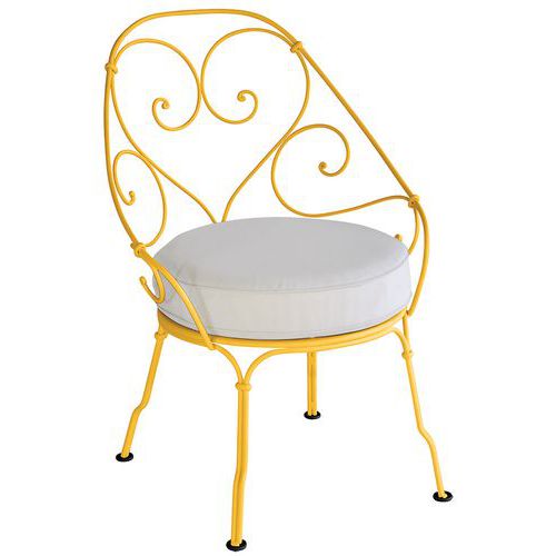 Fauteuil cabriolet 1900 coussin blanc grisé Fermob, Assise matériau: Tissu, Dossier matériau: Acier