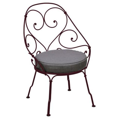 Fauteuil cabriolet 1900 coussin gris graphite Fermob, Assise matériau: Tissu, Dossier matériau: Acier