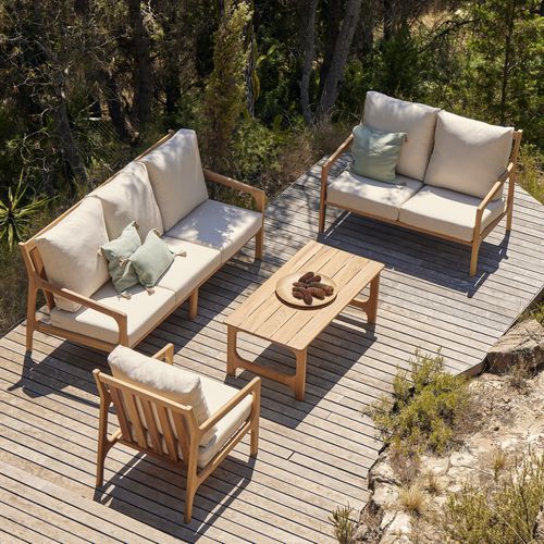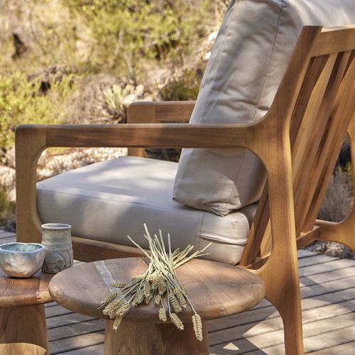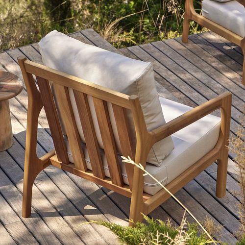 Fauteuil St Malo - assise dossier et piètement Iroko + coussin