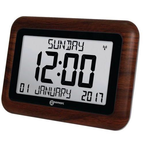 | Intitulé du produit | Horloge grand affichage aspect bois Geemarc, Horloge affichage: Numérique, Forme: Rectangle, Coloris: Marron |