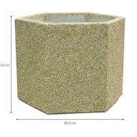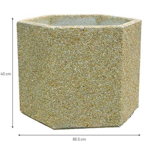 Jardinière béton hexagonale , finition gravillons lavés. Monobloc, autostable. Trous d'évacuation Ø 40 mm en fond de la jardinière. Fabriquée dans l'Allier.