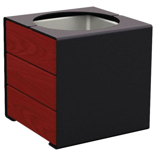 - Jardinière Kub carrée en acier massif épaisseur 6 mm et 2 faces en bois exotique épaisseur 22 mm.