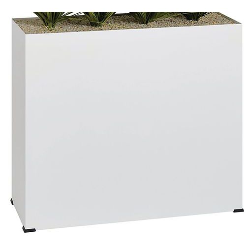 Bac métal épaisseur 1 mm monté sur patins. Plantes artificielles de qualité, surfaçage en petits gravillons fixés par résine. Dimensions hors tout : 80 x 145 x 25 cm. Dimensions de la niche : largeur 57 cm, hauteur 32 cm et profondeur 25 cm. Poids 26 kg.