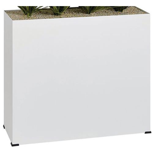 Bac métal épaisseur 1 mm monté sur patins. Plante artificielle de qualité, surfaçage en petits gravillons fixés par résine. Dimensions hors tout : 80 x 134 x 25 cm. Poids 21.5 kg.
