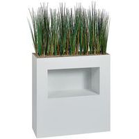 Bac métal épaisseur 1 mm monté sur roulettes. Plante artificielle de qualité, surfaçage en petits gravillons fixés par résine. Dimensions : 80 x 151 x 25 cm. Dimensions de la niche : largeur 57 cm, hauteur 32 cm et profondeur 25 cm. Poids 24 kg.