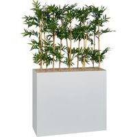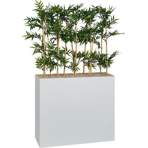 Jardinière métal au décor de bambous pour une composition florale artificielle de qualité.