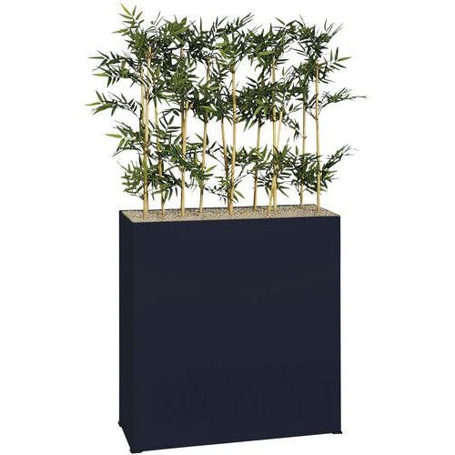 Bac métal hauteur 90 cm, épaisseur 1 mm monté sur roulettes. Plante artificielle de qualité, surfaçage en petits gravillons fixés par résine. Dimensions : 80 x 184 x 25 cm. Poids 29 kg.