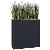 Bac métal hauteur 90 cm, épaisseur 1 mm monté sur roulettes. Plante artificielle de qualité, surfaçage en petits gravillons fixés par résine. Dimensions : 80 x 151 x 25 cm. Poids 24 kg.