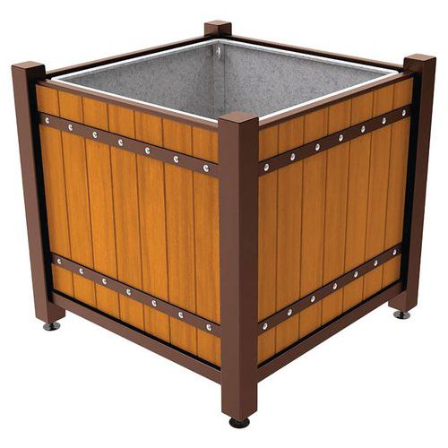 - Habillage en panneaux de chêne épaisseur 22 mm, finition lasurée acajou ou chêne clair, bac acier amovible avec anneaux inclus.