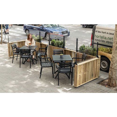 - Idéale pour les terrasses attenantes aux voies de circulation ou aux pistes cyclables.