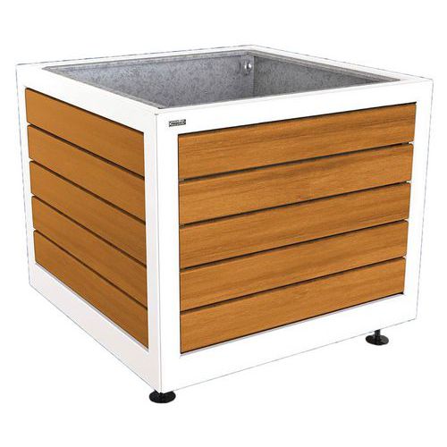 Jardinière Silaos acier et bois avec bac, Matériau: Bois exotique, Type de fixation: À poser