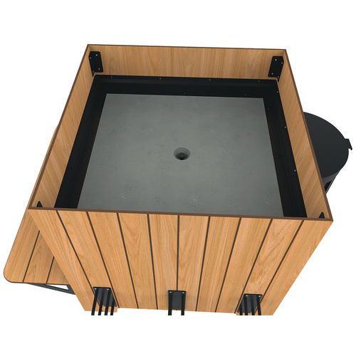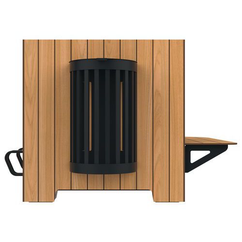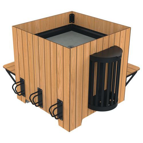 | Intitulé du produit | Jardinière STOPY avec poubelle et appui vélo, Matériau: Teck, Type de fixation: À poser, Longueur: 188 cm |
