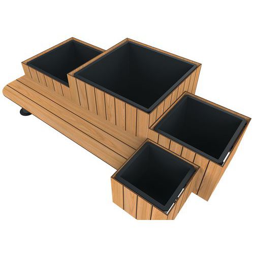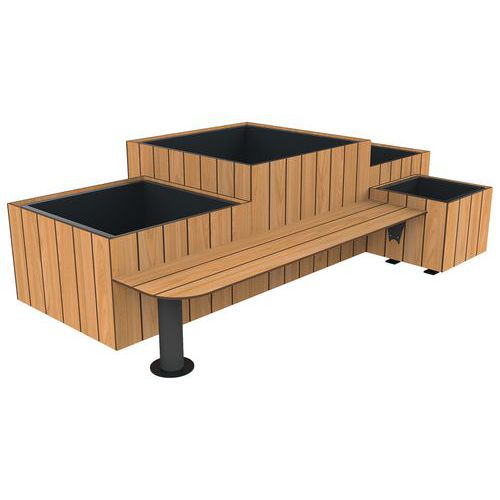 | Intitulé du produit | Jardinières COPAL 1100 L avec banc teck/métal, Matériau: Teck, Type de fixation: À poser, Longueur: 283.8 cm |
