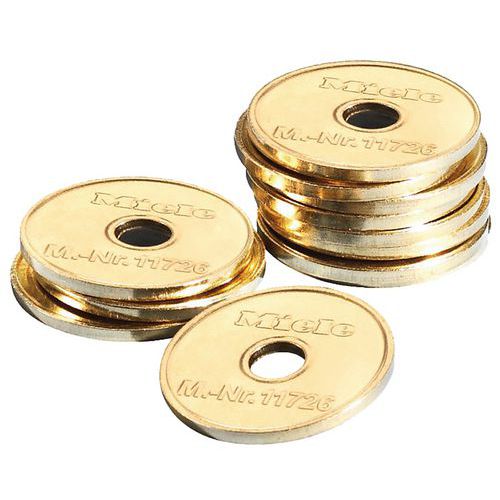 | Intitulé du produit | Lot de 50 Jetons WM9 pour sèche linge -Miele Professional, Coloris: Or, Type: Jetons pour monnayeur |