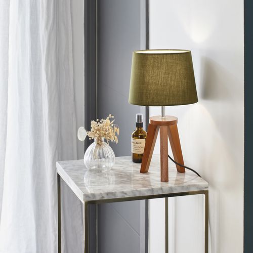 | Intitulé du produit | Lampe bois khaki Corep YOGA H33.5 cm, Coloris: Marron, Type de culot: E14, Matériau: Bois multiplis |