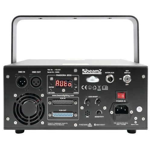 Laser Pandora 1600 TTL RGB Beamz, Type: Laser, Nb de canaux DMX: 23, Largeur: 243 mm, Hauteur: 128 mm