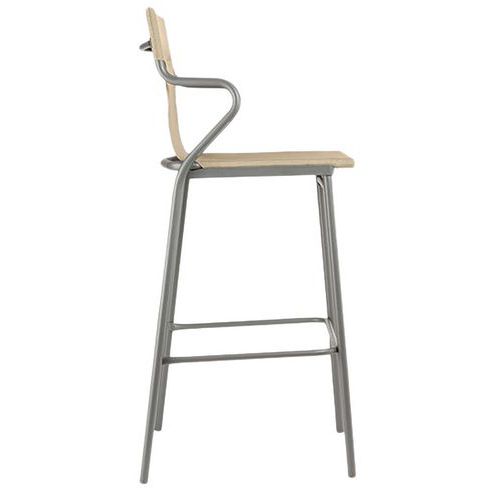 Chaise haute légère, facilement manipulable par la traverse du dossier et empilable pour faciliter le rangement.