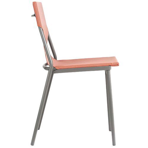Chaise Horizon empilable, légère et fonctionnelle avec sa traverse en haut du dossier pour faciliter la manipulation.
