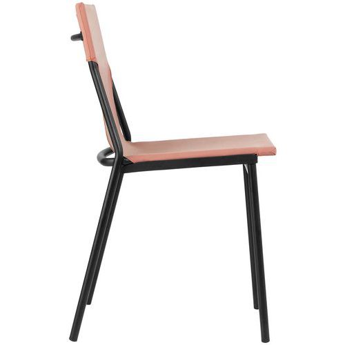 - Empilable, légère et facile à manipuler grâce à sa traverse de dossier.