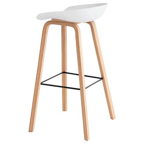 - Le tabouret haut Ronie possède un piètement en bois massif 4 branches reliées par une barre repose-pieds métallique pour plus de stabilité et solidité