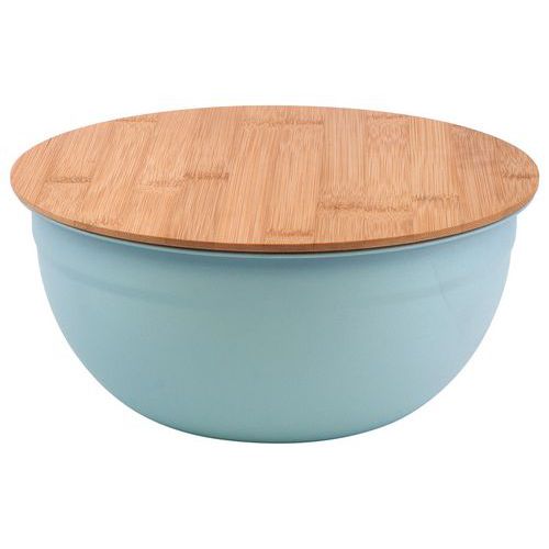 - Saladier en inox avec couvercle en bambou et joint en silicone.