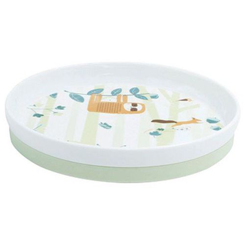 - Assiette plate MILL'O en porcelaine anti dérapante avec son fond en silicone.