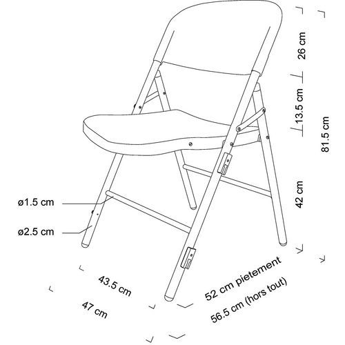 - L/H/P : 56,5 x 81,5 x 50 cm (dépliées)