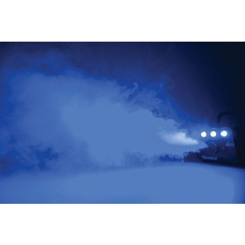 Une machine à fumée 700 W avec LED bleue pour créer un effet Glace unique lors du dégagement de fumée. La machine à fumée a un réservoir intégré. L'effet peut, si souhaité, être désactivé sur la face arrière de la machine à fumée. L'activation de la fumée peut être gérée via la télécommande.